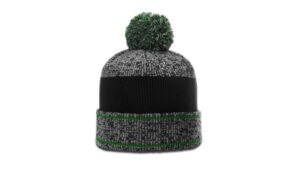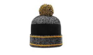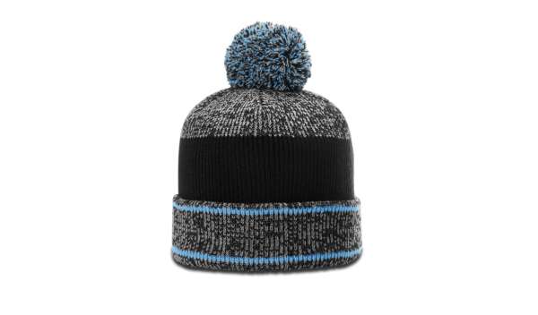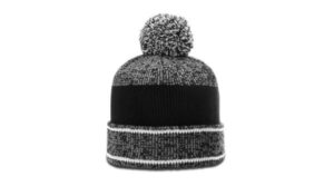 The Heathered Pom Beanie w/ Cuff features a 6 topseam knit made from 100% acrylic.