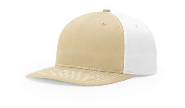 The Twill Back Trucker has an adjustable snapback fit, mid-pro shape, a precurved visor, constructed with a cotton-poly twill fabric.