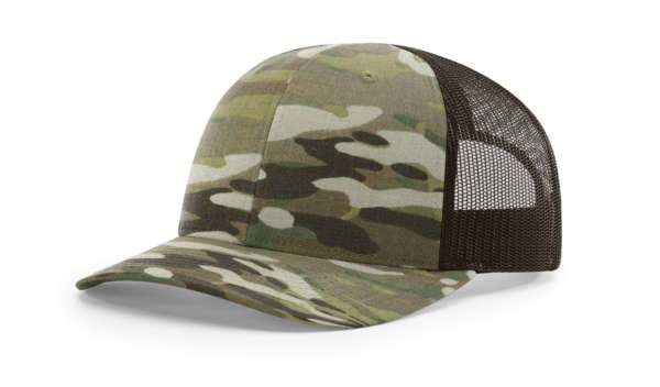 The Multicam Trucker features an adjustable snapback fit with a mid-pro shape, precurved visor, constructed from 50/0 NYCO Ripstop/poly mesh.